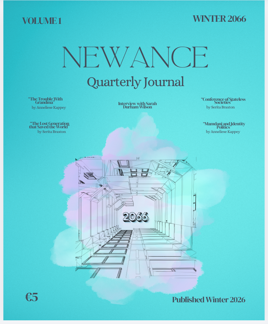 Newance is a magazine being created to reshape how we think of the future. It is set in 2065, a fact the entire publication simply takes for granted. Through this futuristic lens, creators Anneliese Kappey and Serita Braxton tell tales of a past that is part revisionist and mostly speculative fiction.